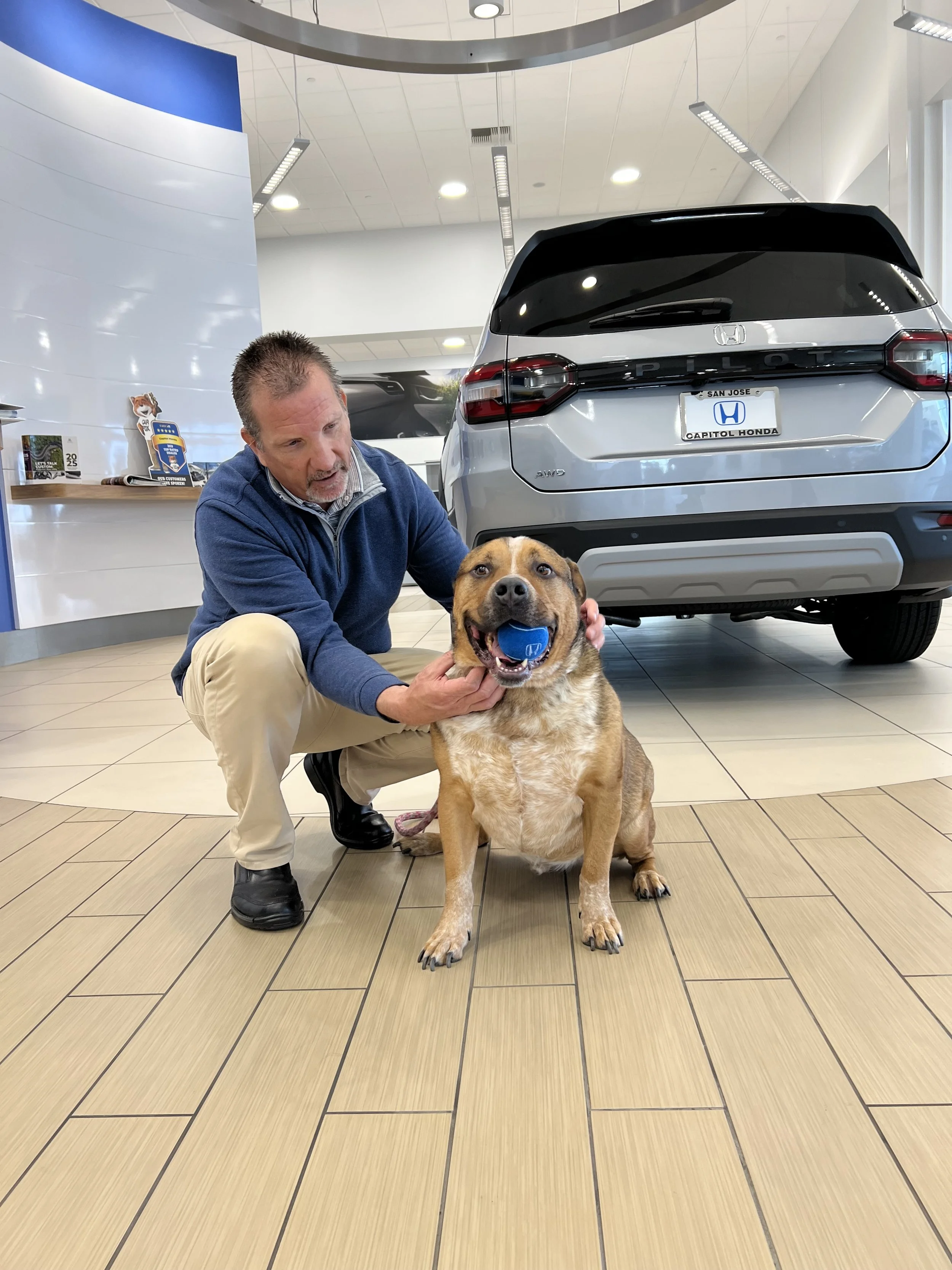 Capitol Honda’s support goes beyond financial contributions. Their team has embraced the spirit of rescue, actively promoting adoption and fostering a community that values the well-being of animals. A perfect example of this commitment is Jon Hagan, their General Manager, who not only champions our cause but is also the proud pet parent of Tuttle, a Silicon Valley Pet Project alum! Tuttle, who was overlooked for many months both in the shelter, and while in foster care at SVPP, represents a heartwarming reminder of the life-changing impact of adoption.