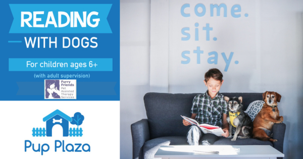 Children (6+ years old and up) are invited to practice their reading skills with Furry Friends Assisted Therapy at Pup Plaza! Books will be provided, but children can bring their own book if they choose. Pup Plaza provides a casual, fun environment to read in the company of gentle and loving dogs.