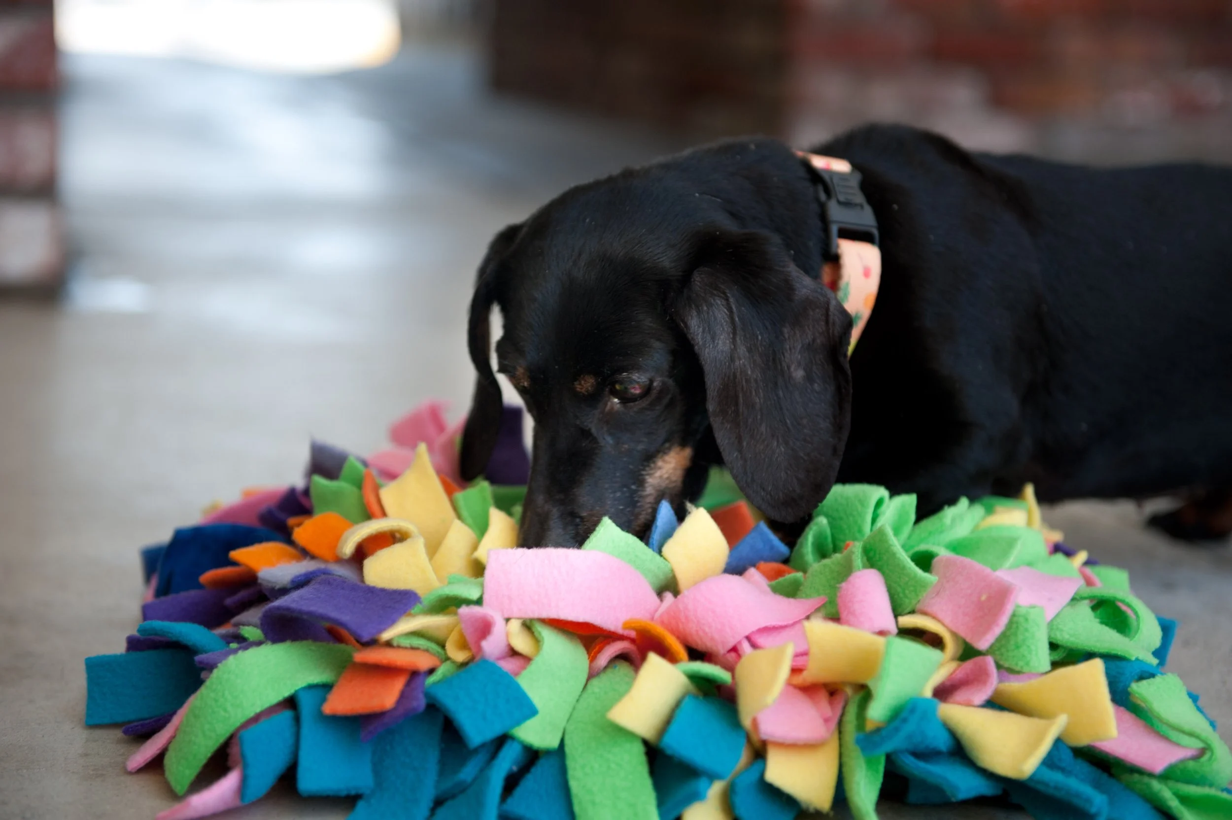 Snuffle mats provide enrichment for both dogs and cats! Hide treats in them and sit back and watch the fun!
